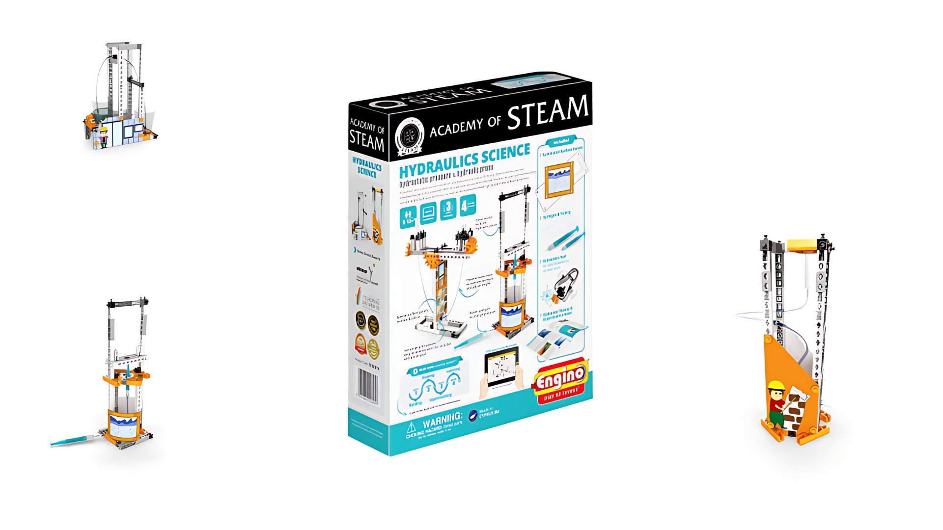 HYDRAULICS SCIENCE :- Build a hydraulic platform and investigate Pascal’s law.Hydraulics is a technology and applied-science using engineering, chemistry, and other sciences involving the mechanical properties and use of liquids.In its Fluid power applications, hydraulics is used for the generation, control, and transmission of power by the use of pressurized liquids. Hydraulic topics range through some parts of science and most of engineering modules and STEM Toys Series.