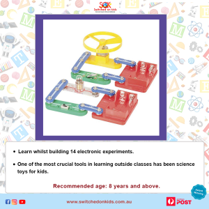 The 14-in-1 Snap-on Electronic Project Kit is a simple and fun way to engage young minds in the world of electronics. With easy-to-assemble snap-on parts, kids can explore a variety of experiments involving circuits, motors, switches, and more. This hands-on kit promotes creativity, problem-solving, and learning while introducing essential STEM concepts in an enjoyable and interactive way.