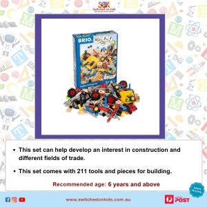 BRIO Builder – Activity Set 211 pieces: The Brio Builder Activity Set introduces early learners to the world of construction. It comes with 211 tools and pieces for constructing things from your imagination while helping develop hand-eye coordination and fine motor skills.