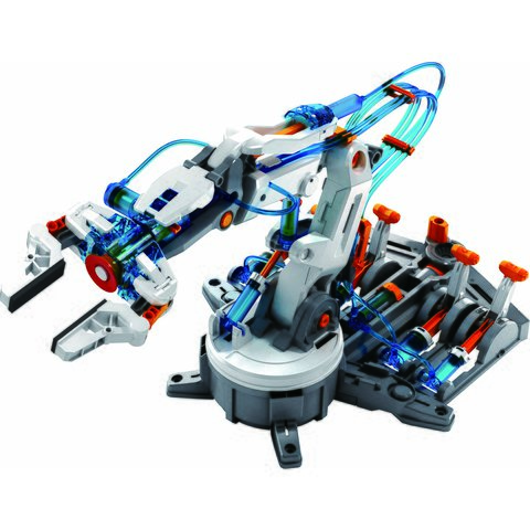 This build-it-yourself hydraulic robot arm is a space-age device that`ll help you do all manner of household tasks using its gripping and sucking functions. Make the base and wrist rotator use the shoulder and elbow motion, and use the lever controllers to make it pick things up and put things down! No batteries or motors are required as its hydraulics do all the work.