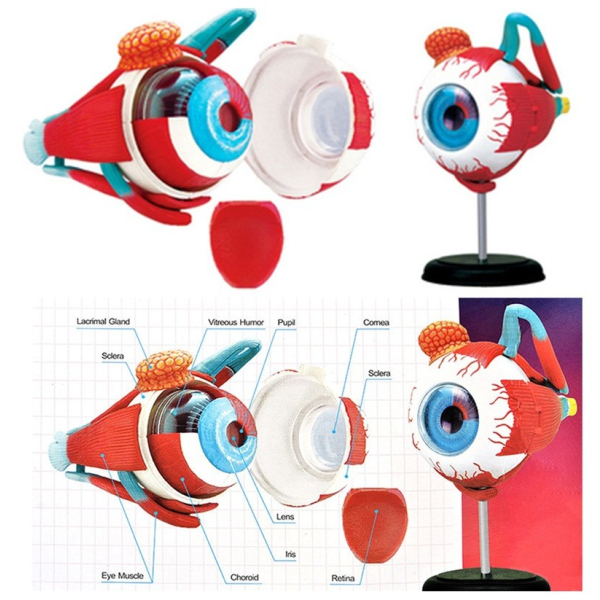 Eyeball Anatomy Model: Busy hands build strong minds! Learn about Human Eyeball with this fun 4D puzzle! The model has a transparent cutaway to show internal organs and structure. Challenge your critical thought and mental acuity. Build dexterity, fine motor skills, and problem-solving skills. Reinforce learning through hands-on exploration!