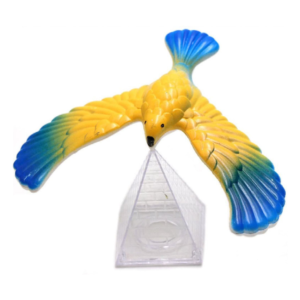 Balance Bird: The bird’s centre of gravity — also called the centre of mass — is located at the tip of its beak. This is the point at which the mass of the body is perfectly balanced. Just as you can hold a pencil using one finger if you find its centre of gravity, so the balancing bird will balance on its beak. Try balancing this intriguing bird on almost anything you can think of: a tip of a pen, a finger, a phone. Give it a spin and watch in amazement as it still stays balanced.