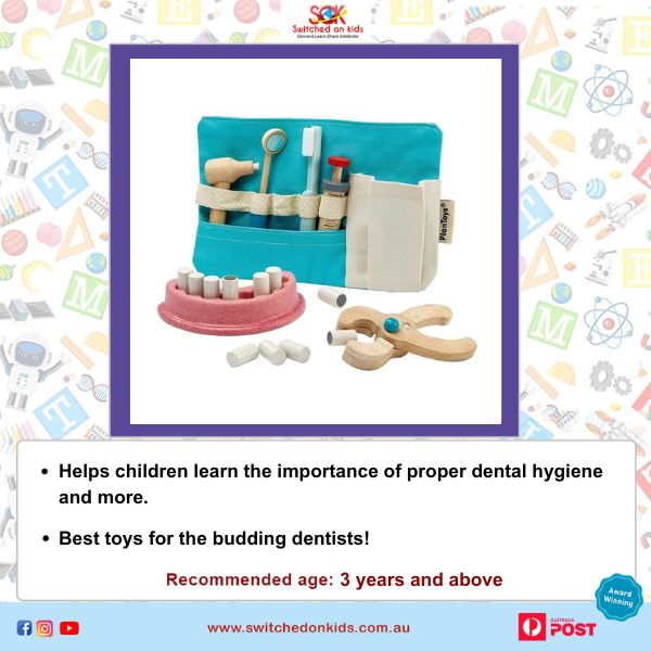 PlanToys – Dentist Set: This PlanToys – Dentist Set realistic pretend play set has everything an aspiring dentist needs to learn and practice.