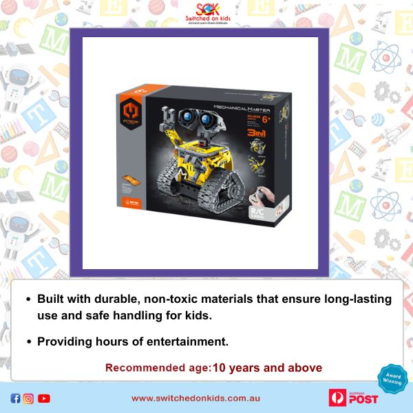 R/C ROBOTS & MECHANICAL DINOSAURS 3IN1 :Introducing the iM.Master 2.4G R/C & APP Robots & Mechanical Dinosaurs 3 IN 1 – a thrilling combination of creativity, technology, and prehistoric adventure! With 430 meticulously crafted pieces, this kit offers an exhilarating building experience that culminates in not just one, but three incredible creations.
