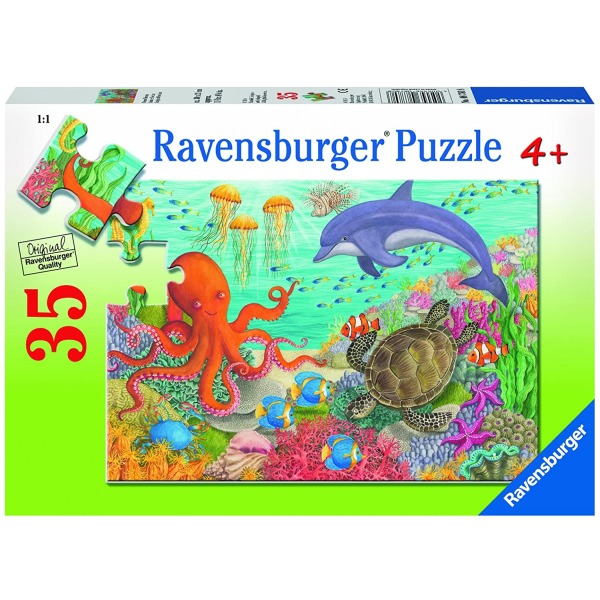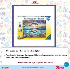 Ravensburger Dolphin Paradise Puzzle features 300 pieces, perfect for children who are ready for a challenge. With a wide range of vibrant designs, Ravensburger offers something for every young puzzler. This dolphin-themed puzzle helps develop problem-solving skills, hand-eye coordination, and concentration while providing hours of fun and learning about marine life in a beautiful, engaging way!