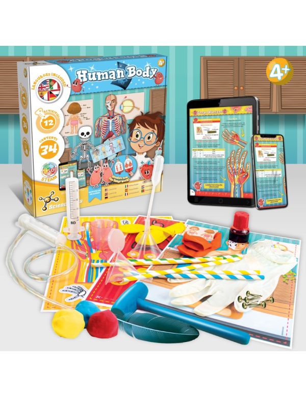 The kit includes over 15 experiments and activities, complete with all the tools and components needed, plus a richly illustrated educational booklet. Kids can build a model of the human skeleton, simulate how lungs work, discover how digestion happens, and much more. Each activity is carefully designed to explain complex biological processes in a simple, engaging format that encourages critical thinking and curiosity.