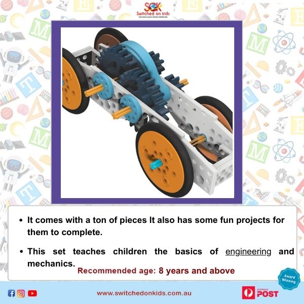 The set comes with easy-to-follow instructions to make a working catapult, a spring-loaded car, and a room-to-room message carrier. What is great about this is that children can apply the knowledge that they have learned and use it.